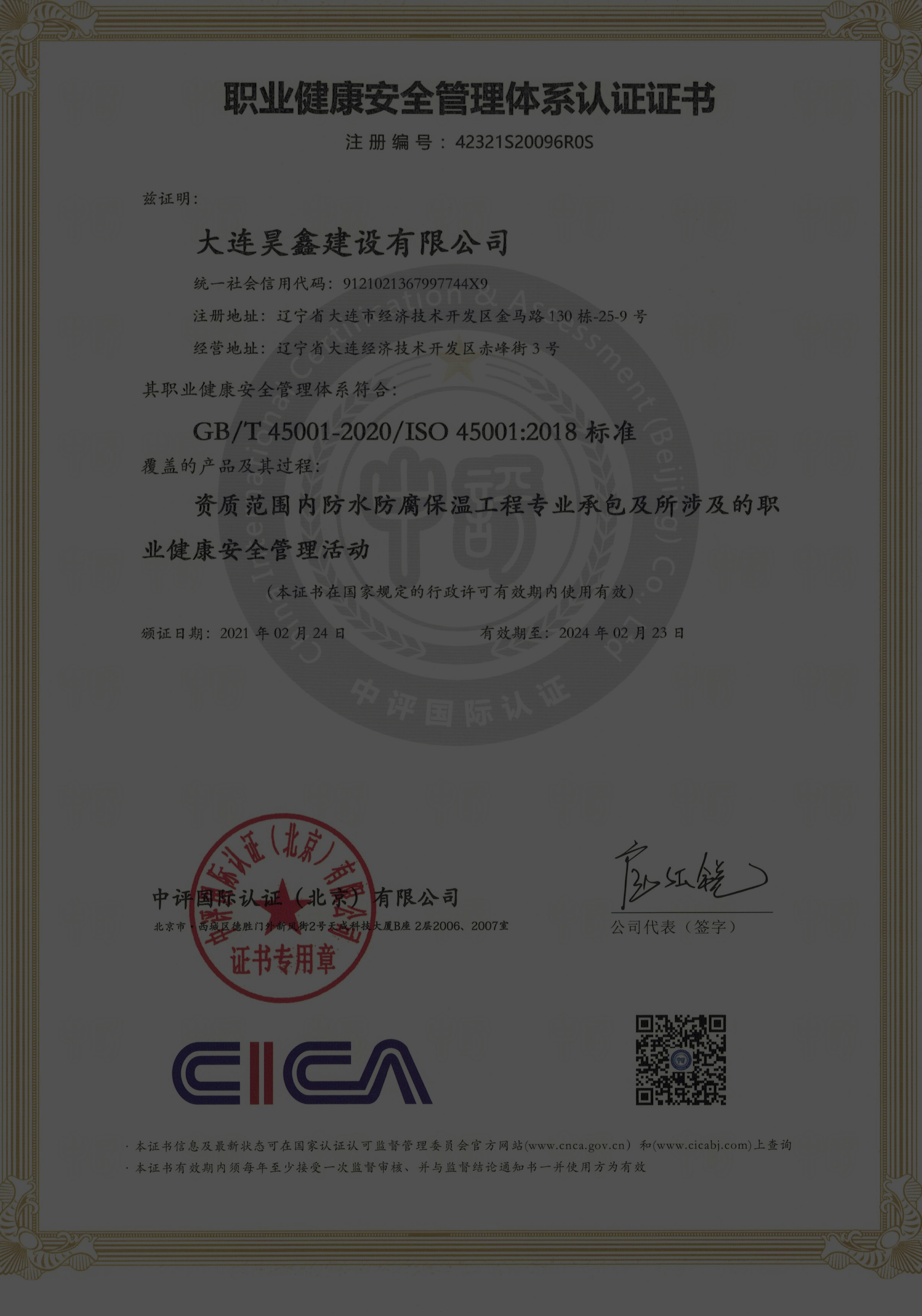 大連昊鑫建設(shè)有限公司珠海分公司。
